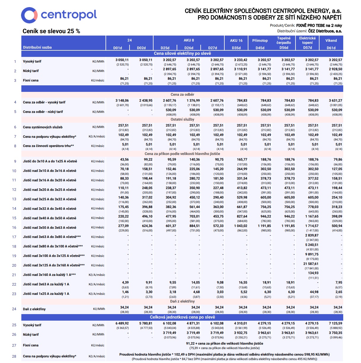 Od 25.8.2024 byly pro odběrná místa na Kadlčákova 1507 sjednány nové ceny elektřiny a plynu.